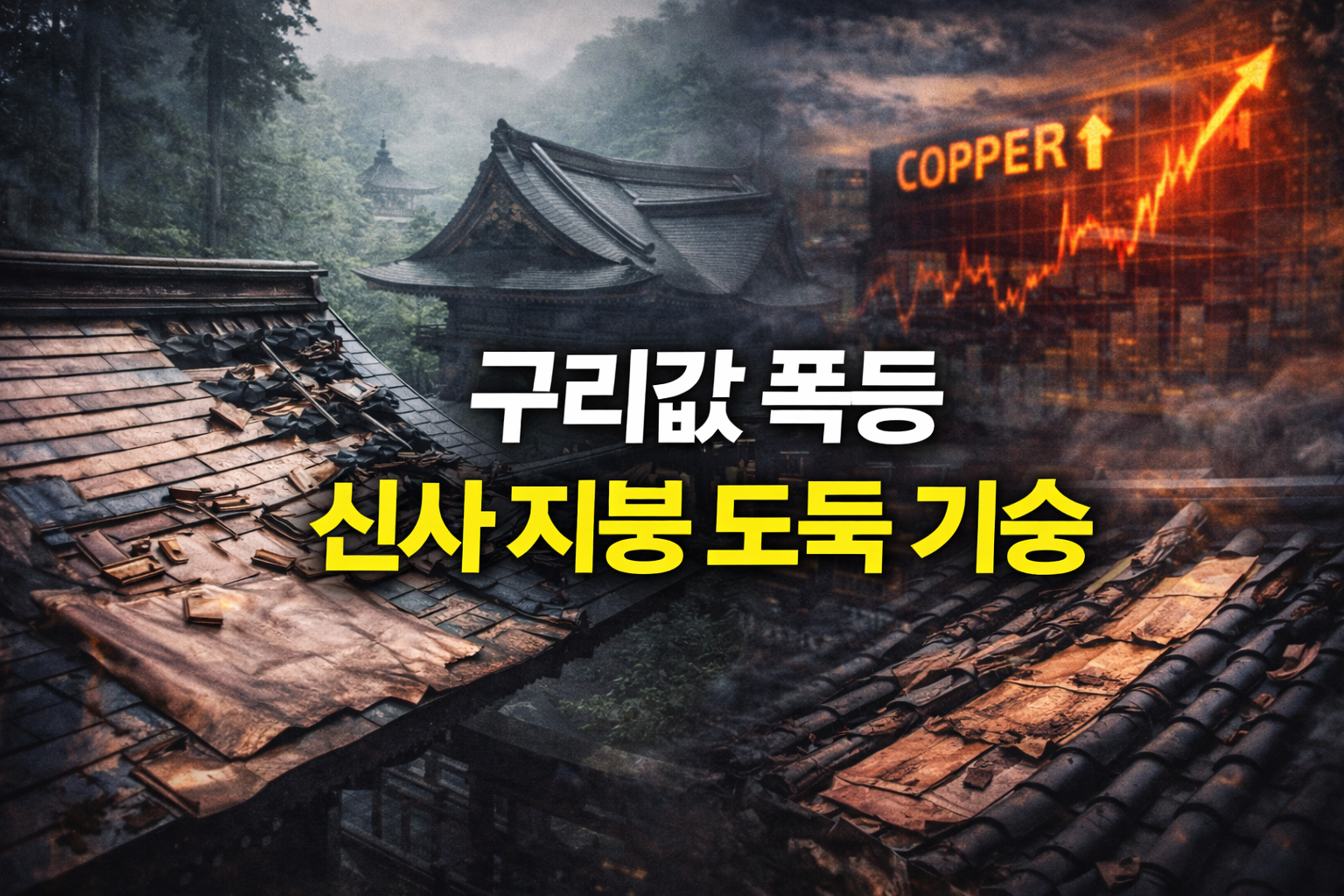 구리 가격이 전 세계적으로 급등하면서, 산속 외진 신사 지붕을 뜯어가는 절도 사건이 잇따르고 있다. 문화재 보존의 상징이던 전통 건축물이 국제 원자재 시장의 변동성에 직접 타격을 받는 아이러니한 상황이다.