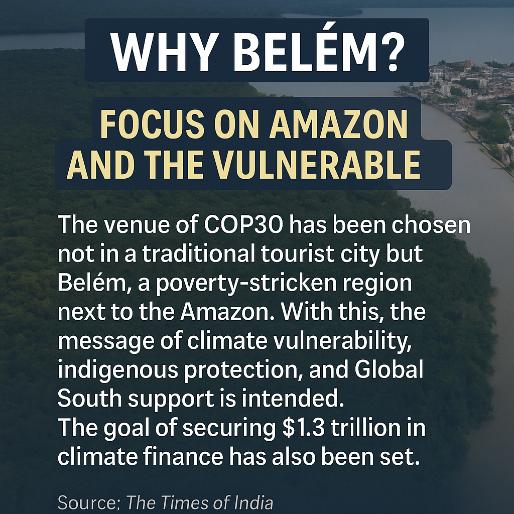 COP30을 베렘에서 개최하는 건 “기후 위기는 약자에게 더 큰 고통을 준다”는 사실을 세계에 알리고, 선진국에 더 큰 책임을 요구하겠다는 브라질의 전략적 메시지야.