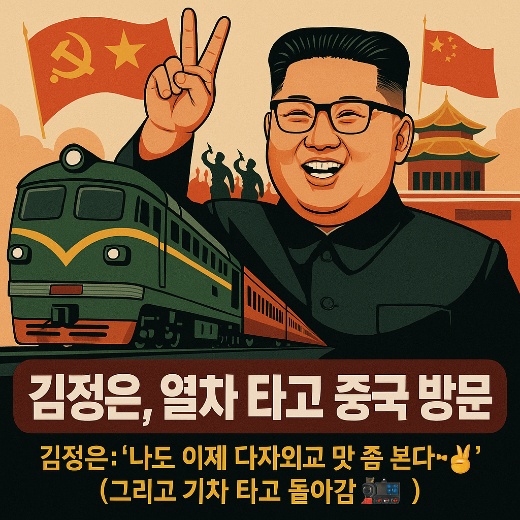 🎯 드립 포인트: “김정은: ‘나도 이제 다자외교 맛 좀 본다~✌️’ (그리고 기차 타고 돌아감🚂)”