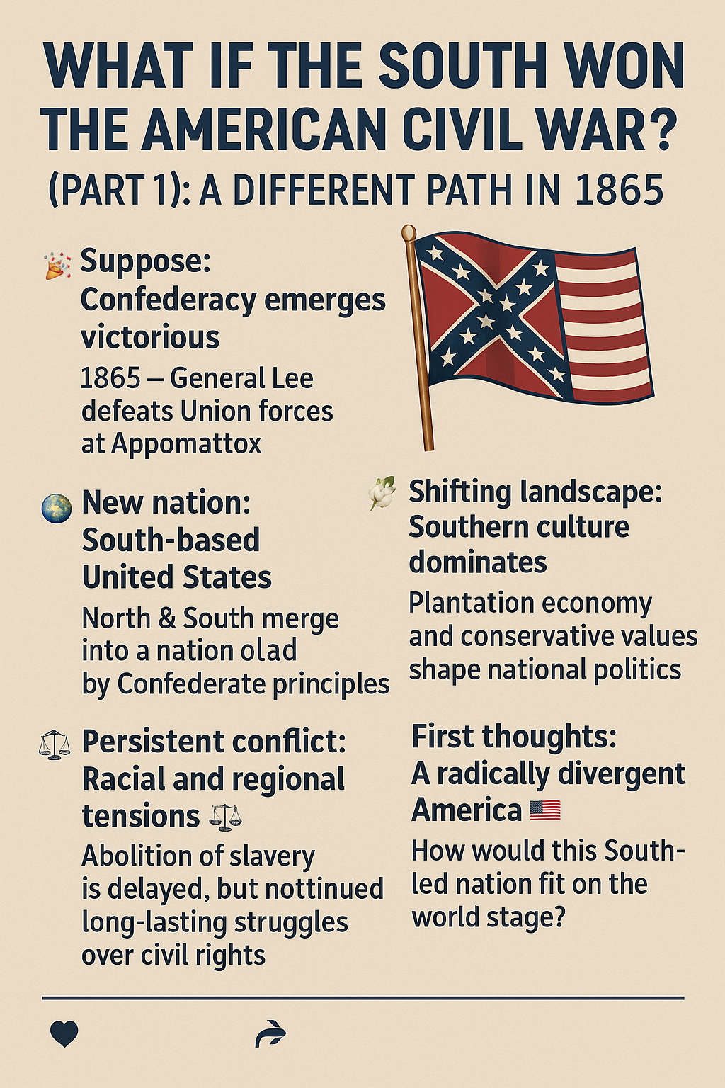 👉 What if the Confederacy had won the Civil War? The balance of power in North America would have shifted, giving rise to a new order where slavery, politics, and regional dominance reshaped the destiny of an entire continent.
